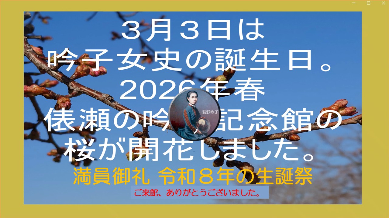 ●嘉永4年(1851) 3月3日は荻野吟子の誕生日です。2026生誕祭。満員御礼、ご来館ありがとうございました。